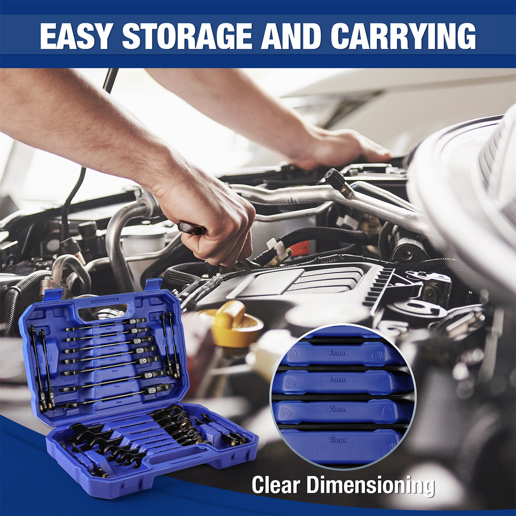 • Metric: 6mm, 8mm, 9mm, 10mm, 12mm, 13mm, 14mm, 15mm, 16mm, 17mm, 18mm