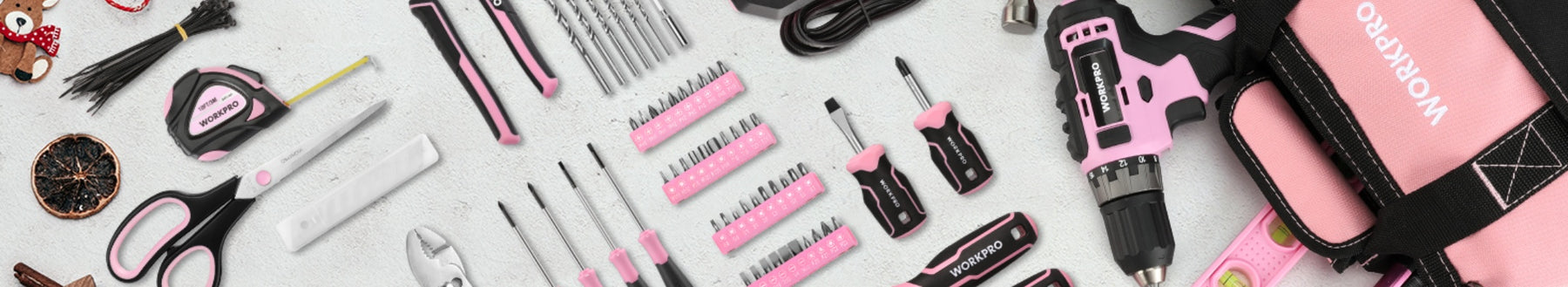 WORKPRO 258PCS / 284PCS Complete Household Tool Set - Pink Ribbon