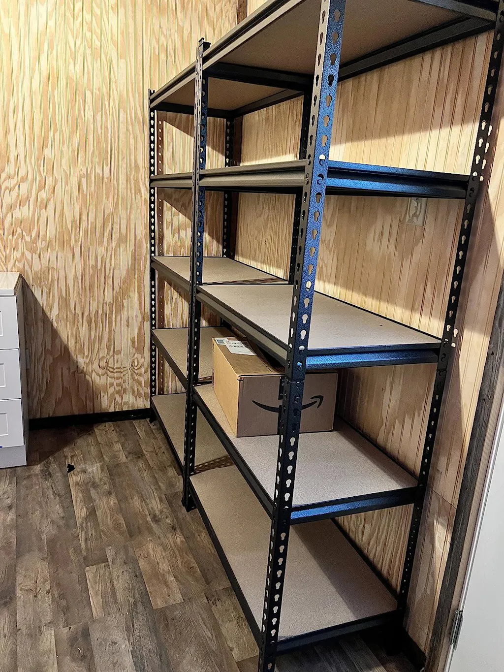 Boltless Shelving: No nuts or bolts are required. You can assemble this shelving unit easily and quickly. A rubber mallet is recommended for assembly to tighten the shelving rack. It is also convenient when disassembled. This shelving is equipped with rubber footpads, which can protect the floor, add extra stability, and prevent the shelving from sliding accidentally.