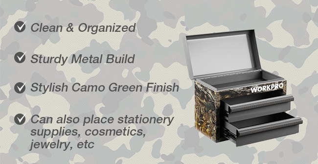 - Camo UV print + scratch-resistant Pantone Cool Gray coating; holds 8.7lbs per drawer (1.5x overload tested) without deformation.